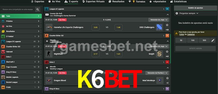 A aposta K6Bet oferece aos jogadores a experiência mais conveniente de apostas em eSports!